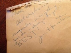I believe most of us don’t realize the impact, positive and negative, that our words can have on the lives of others. To say the words that Jim Houston shared with me 55 years ago had a positive impact on my life would be the height of understatement.